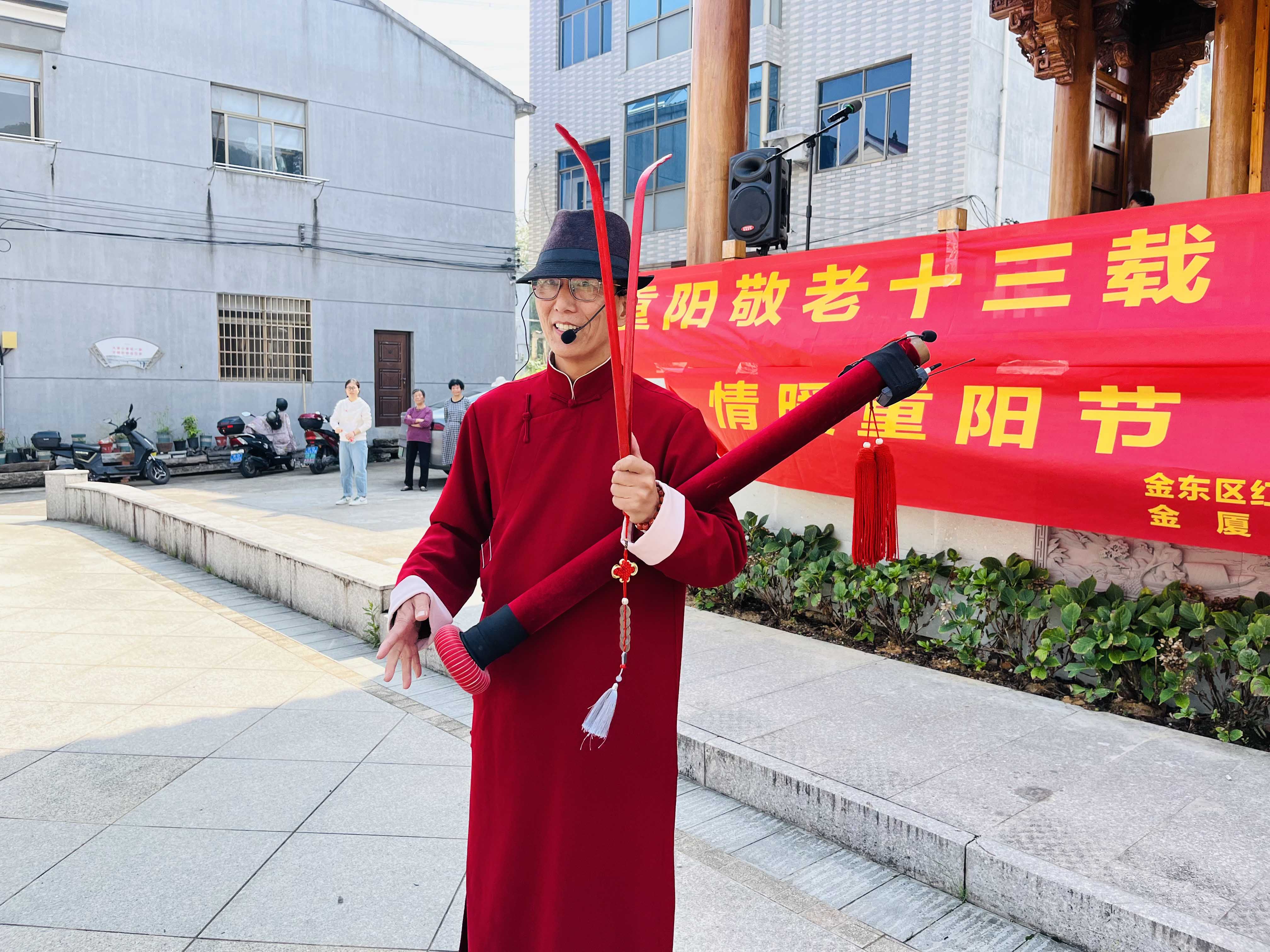 活動期間,為了豐富老人的精神文化生活,金廈特別邀請國家級非遺金華道情傳承人朱躍文先生團隊,通過精彩紛呈的道情表演和穿插其中的文藝節(jié)目為老人們帶來了歡樂和笑聲,現(xiàn)場氣氛熱烈而溫馨。同時,為了關(guān)愛老年人的身體健康,金廈集團聯(lián)合金東區(qū)紅十字會特意組織了公益活動,包括義診和免費理發(fā)服務(wù)。4名義診醫(yī)生和2名理發(fā)師志愿者為大家提供了專業(yè)的健康咨詢和貼心服務(wù),受到了老人們的一致好評。