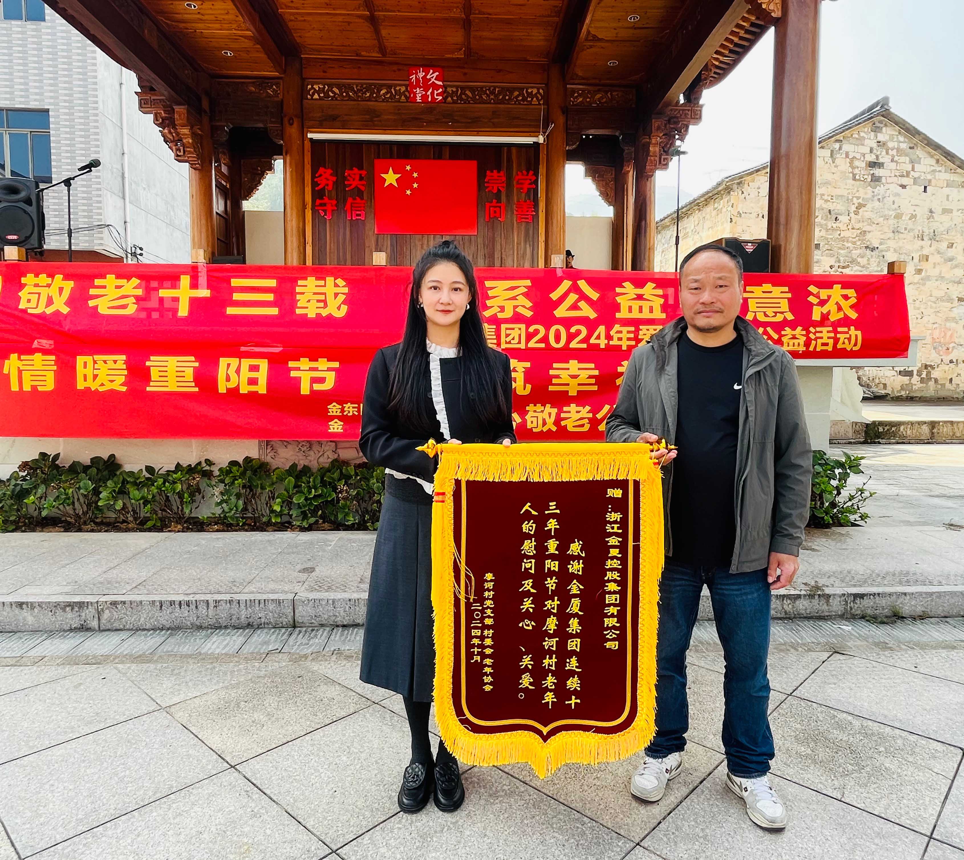 在2024年重陽節(jié)即將來臨之際,為進一步弘揚中華民族尊老敬老的傳統(tǒng)美德,展現(xiàn)企業(yè)的社會責(zé)任感, 10月10日上午,金華市政協(xié)委員、金廈集團董事長蔣晨虹率集團高管及各條線負(fù)責(zé)人一行再次前往金東區(qū)嶺下鎮(zhèn)摩訶村,開展“情暖重陽節(jié),共筑幸福夢”重陽慰問活動,為村里老年人和困難家庭送上慰問金、慰問品,并通過豐富多彩的活動為大家送上節(jié)日的美好祝福。這也是金廈集團連續(xù)第13年開展重陽節(jié)助老公益活動。
